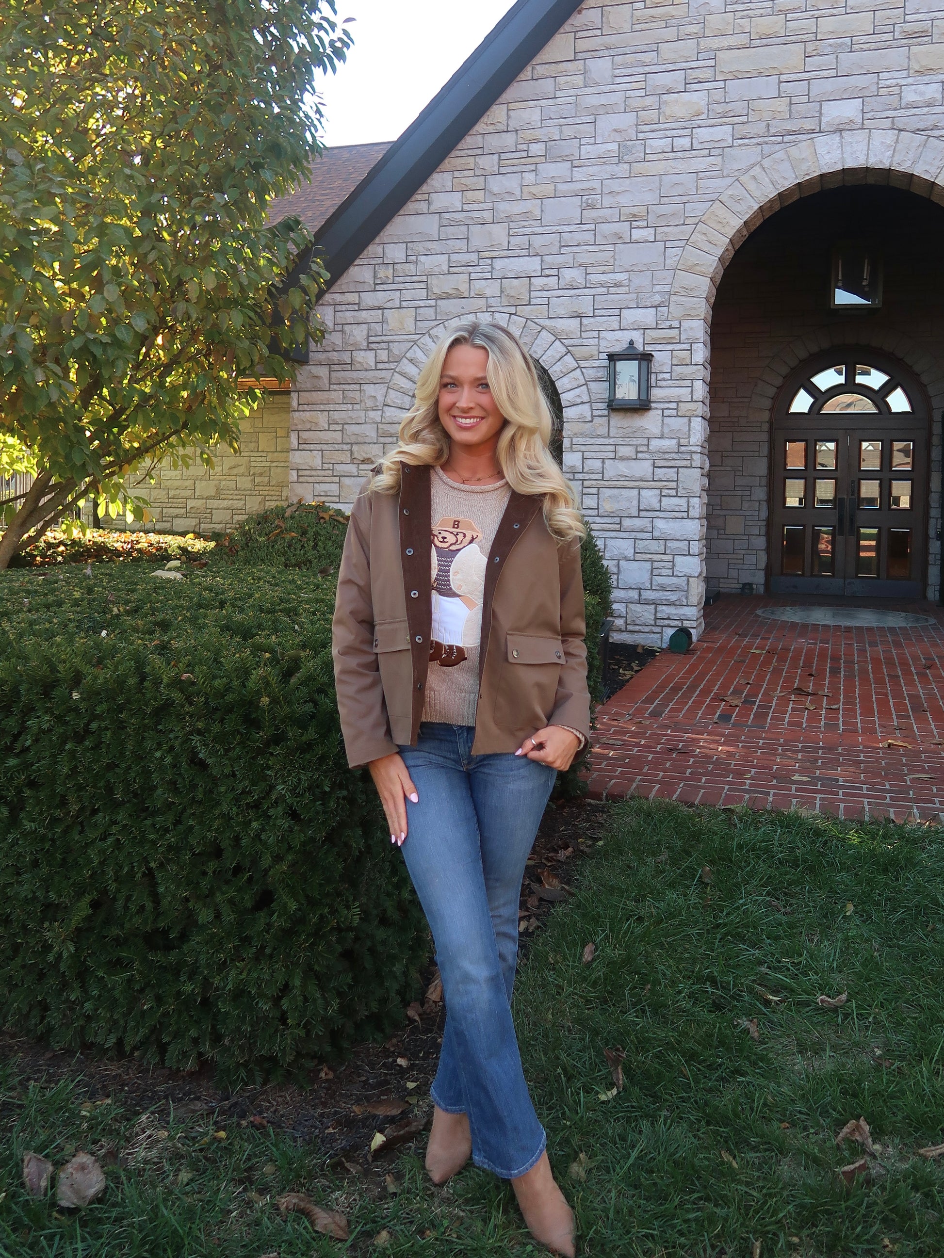 The relaxed fit makes it perfect for crisp, cozy days, while the charming bear graphic brings that vintage-inspired prep vibe we love. Pair it with your favorite jeans for an effortless fall look or pair it under our Kai Barn Jacket for a chic layered look.