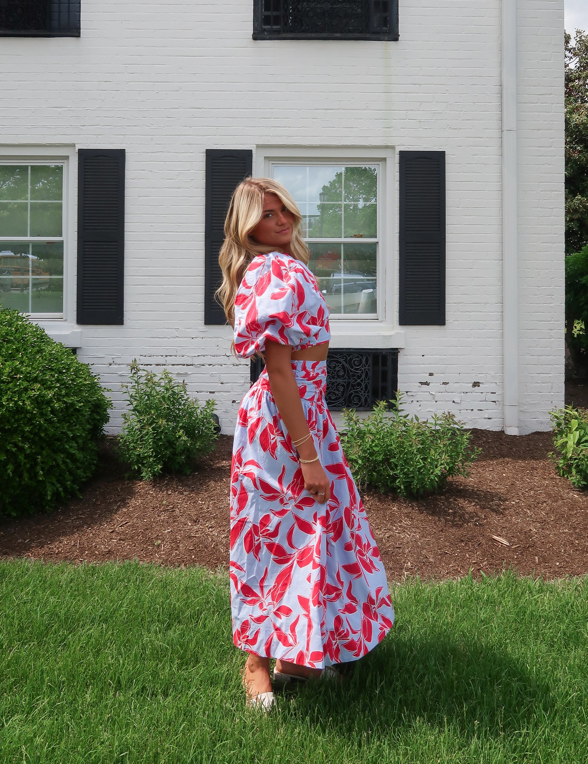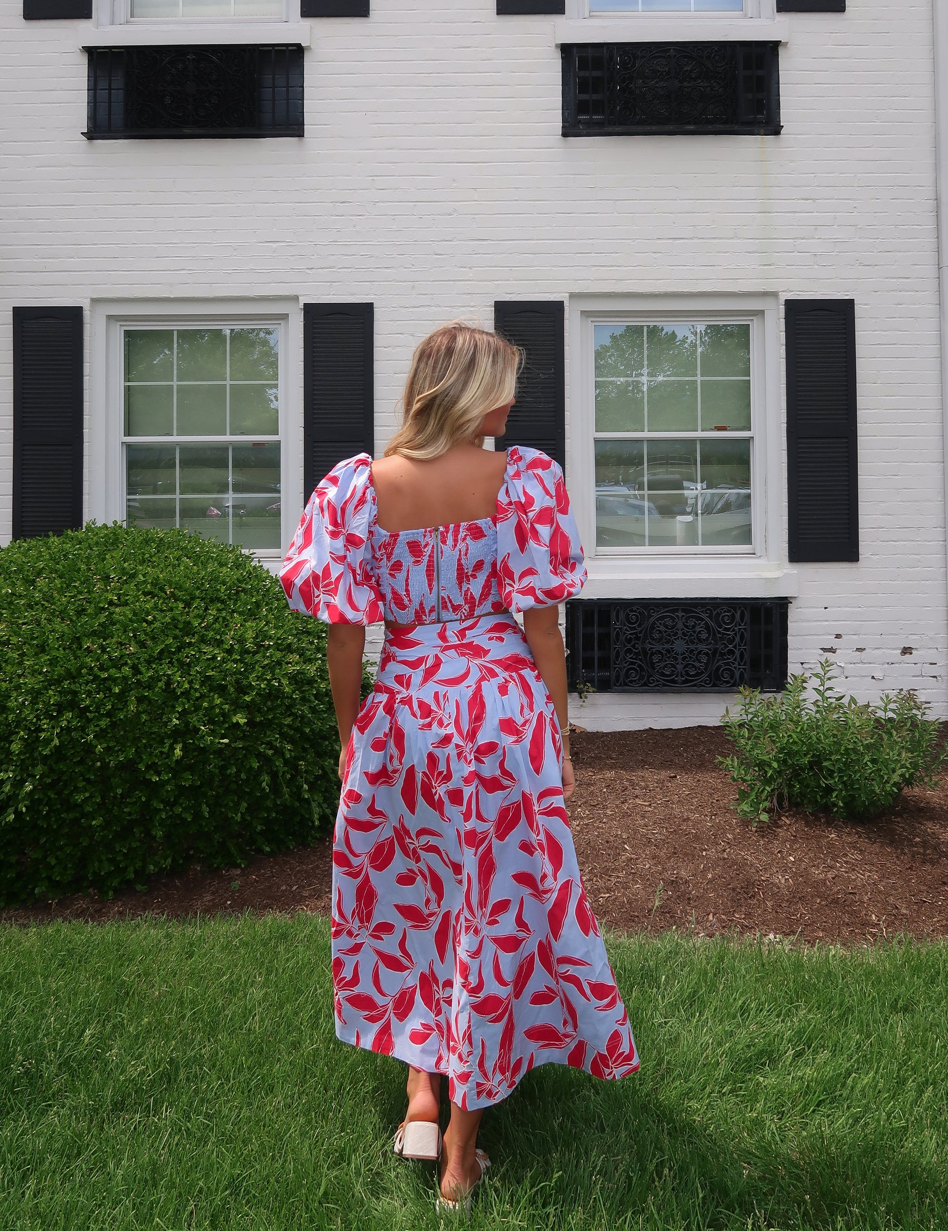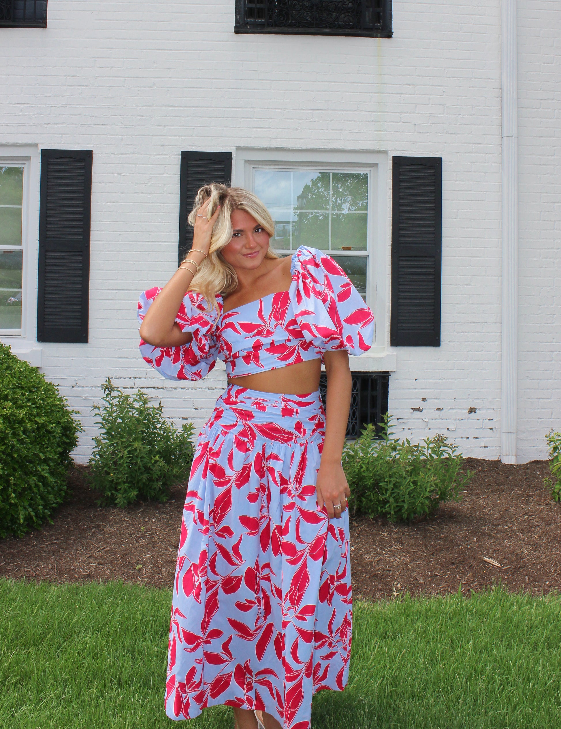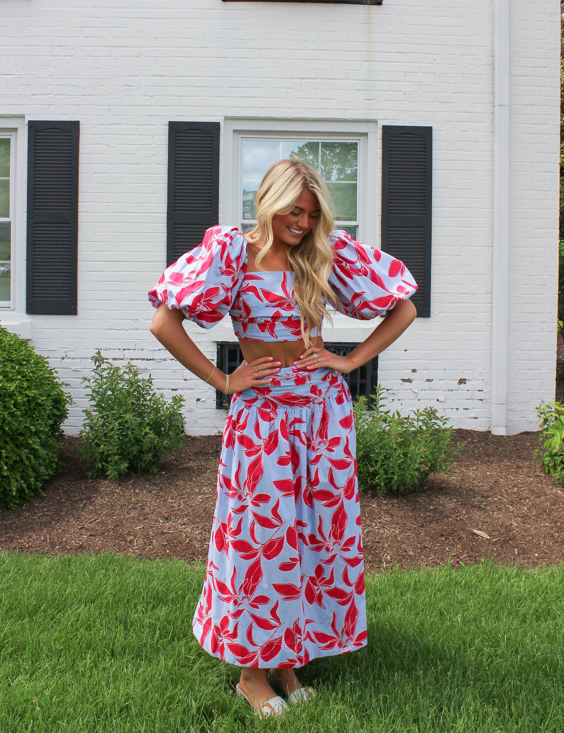 Get ready to make a statement with our McCall Floral Top! This ultimate summer must-have features a bold print and lively colors that scream summer vibes. The smocked back, puff sleeves, and zipper closure ensure a comfortable and flattering fit. Pair with the matching skirt for a complete look!