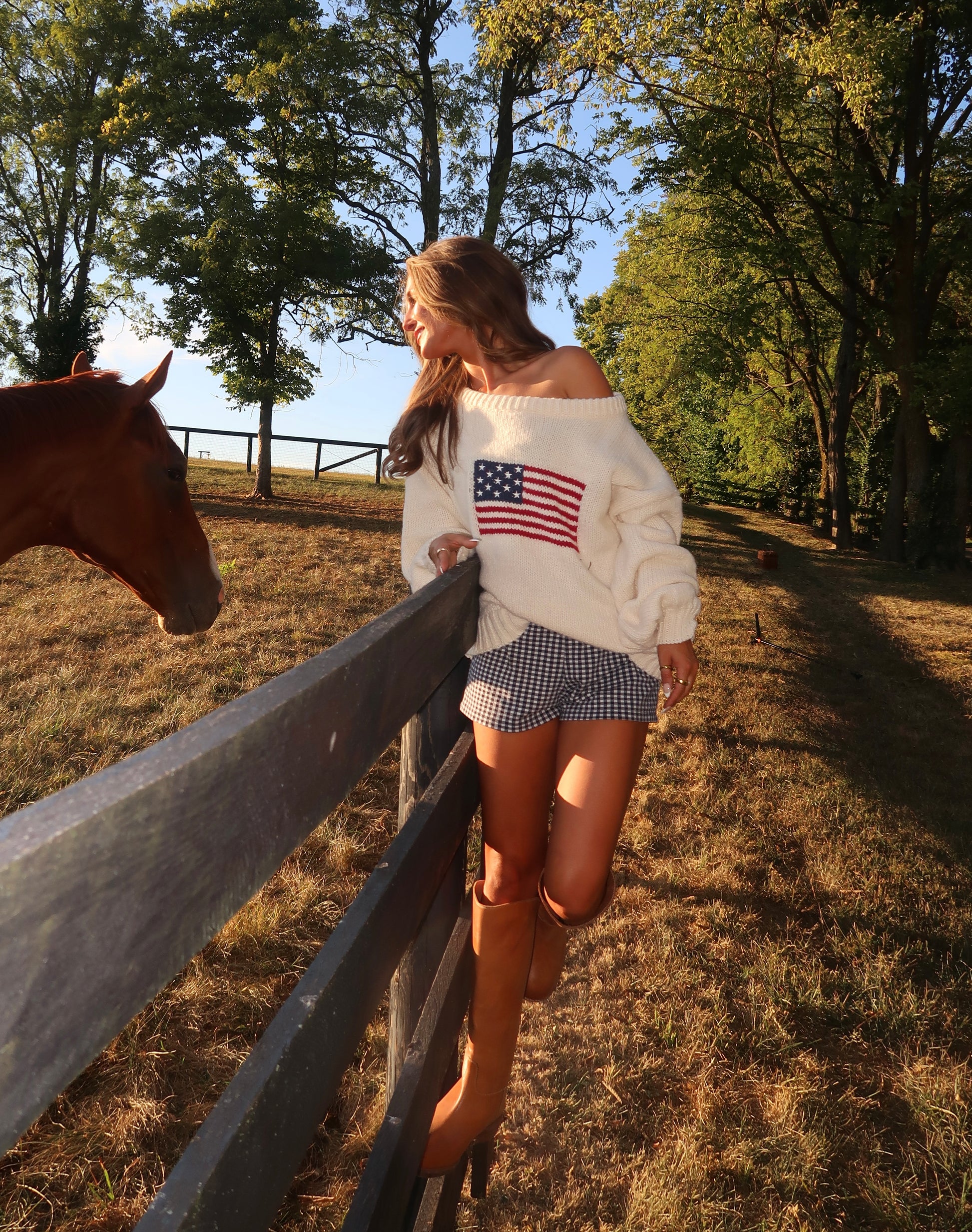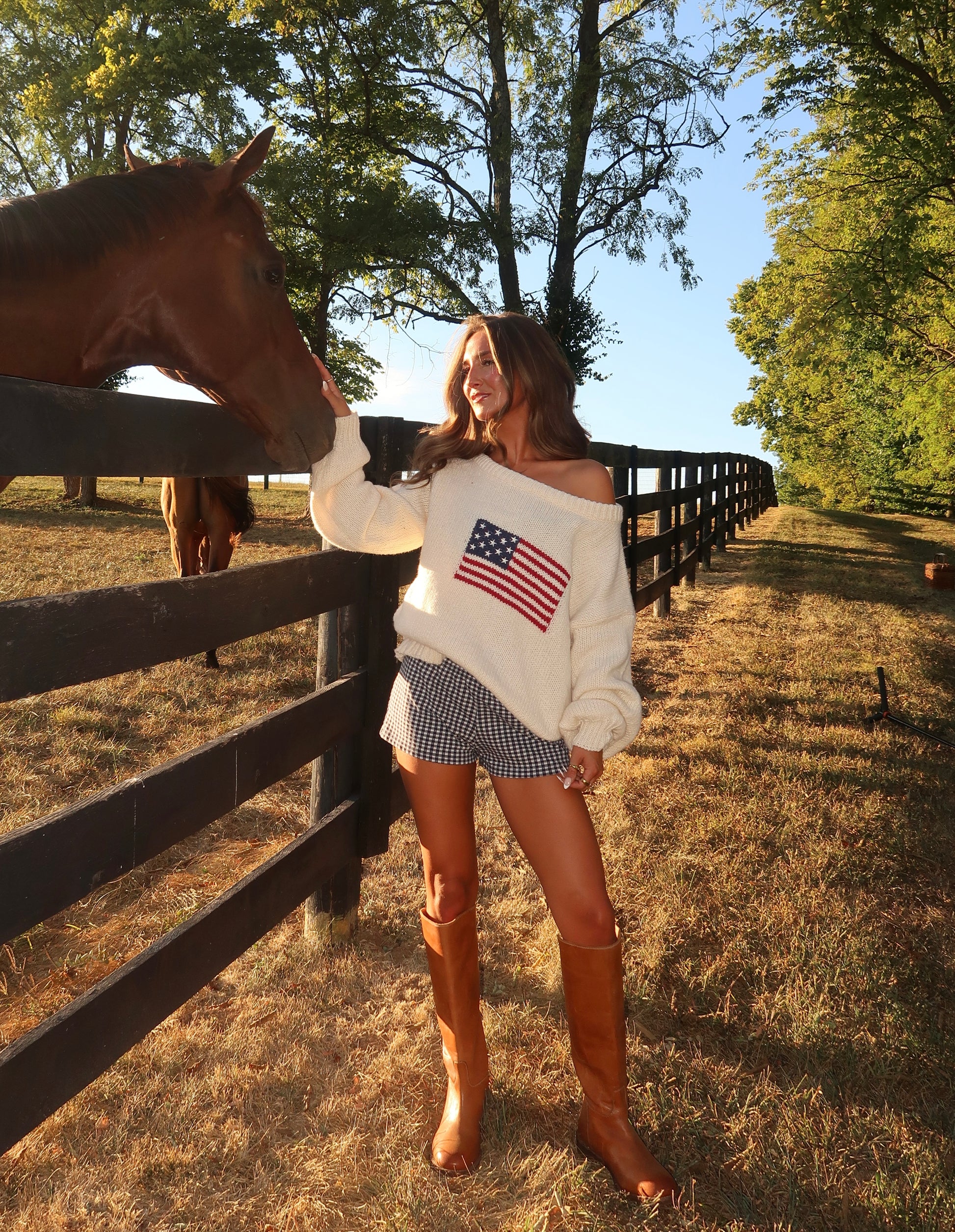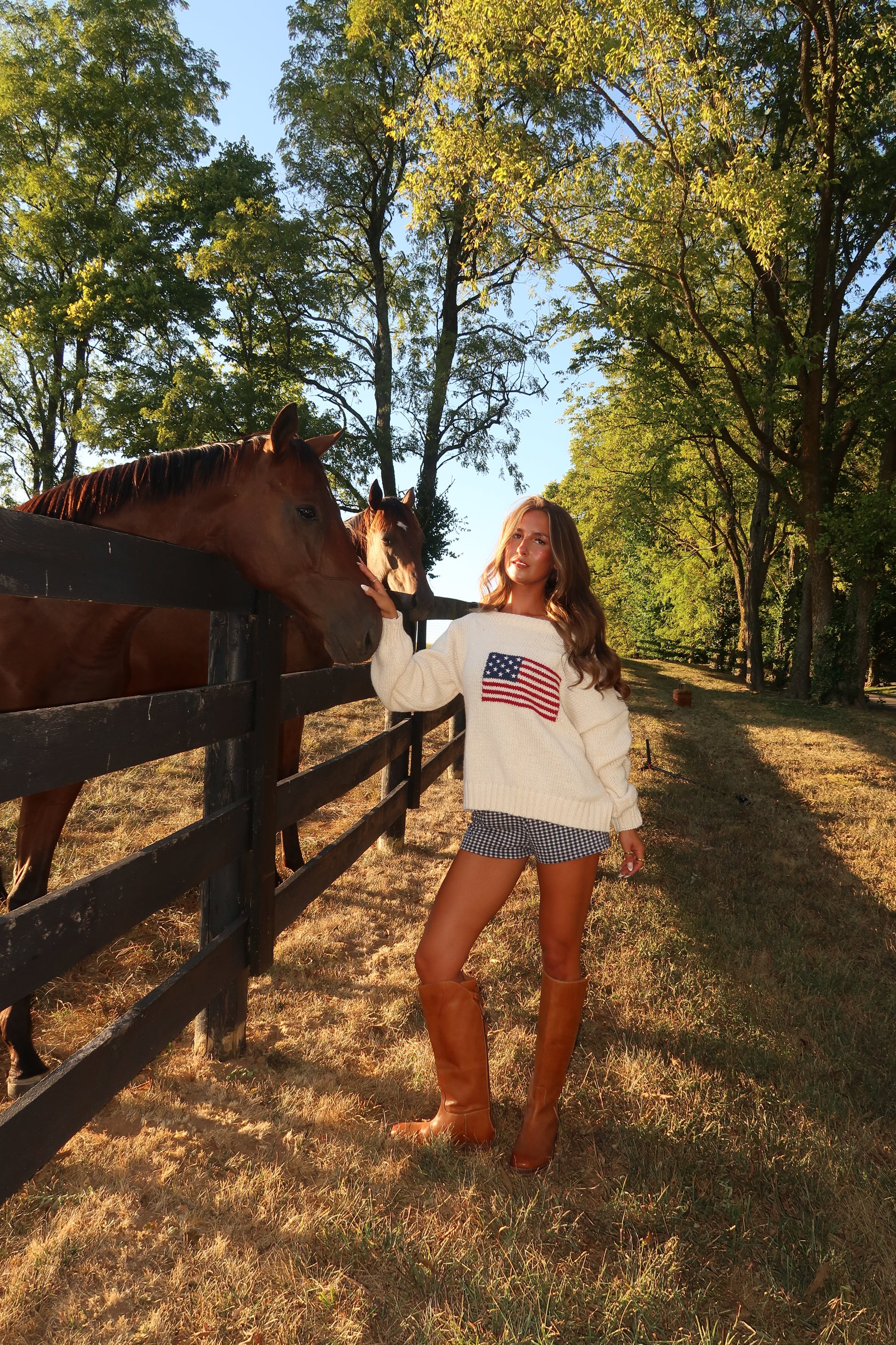 She’s a forever piece. The Ralph American Flag Sweater in cream is a timeless classic you’ll reach for season after season. Knit from a cozy, breathable yarn, it features a wider neckline designed to be worn relaxed or off the shoulder. Pair it with boxer shorts and boots for an effortless cool-girl look, or style with denim for a classic Americana vibe.