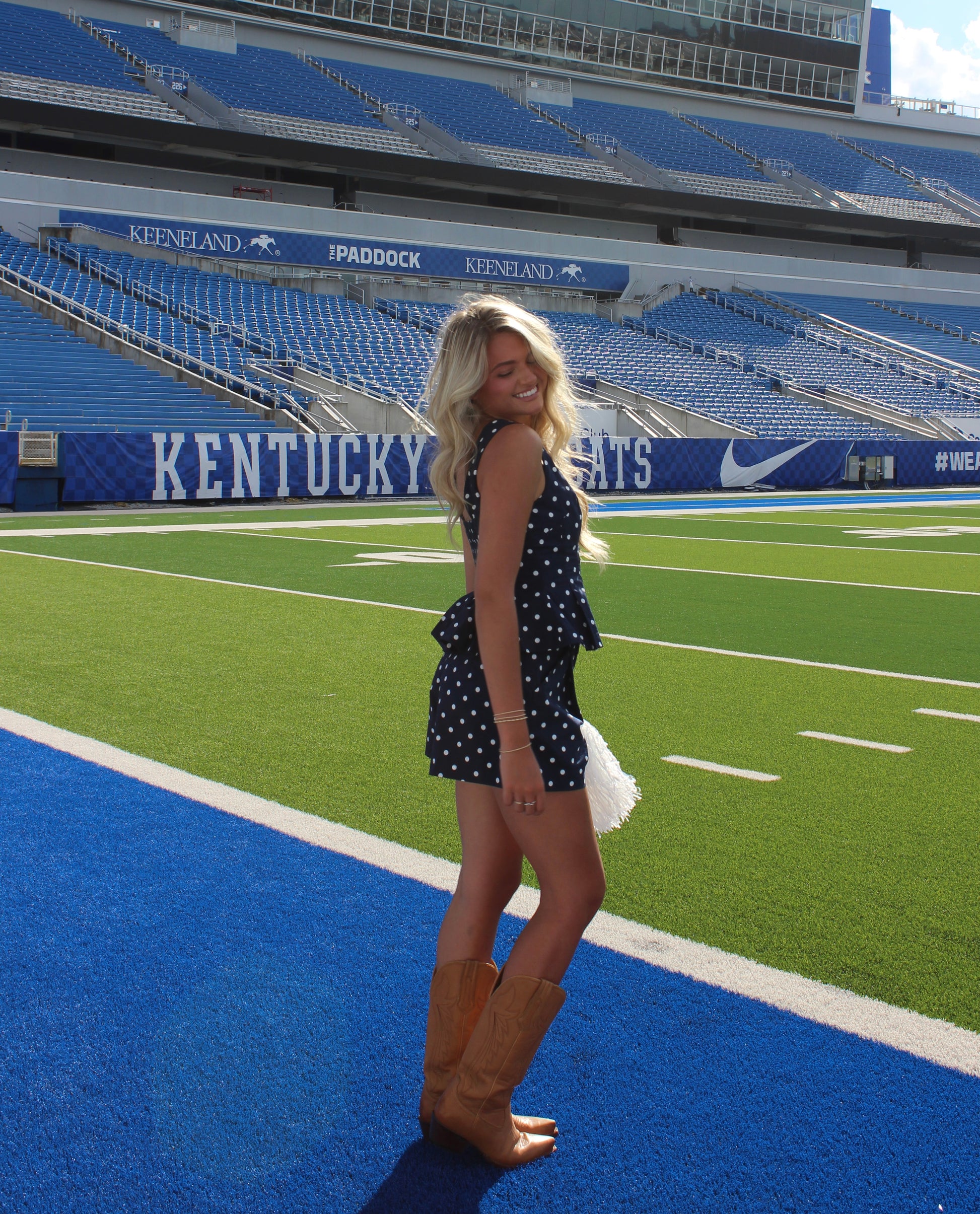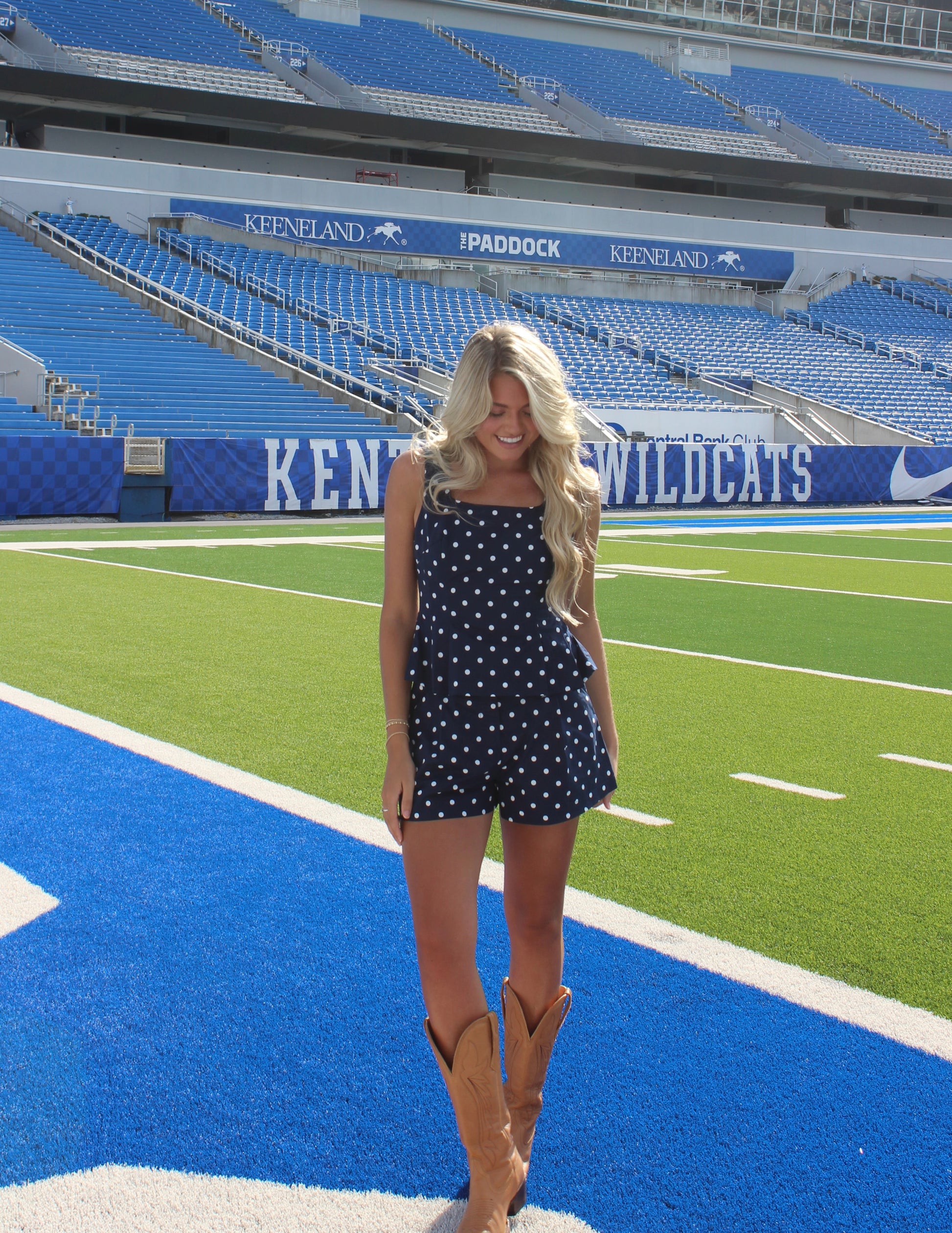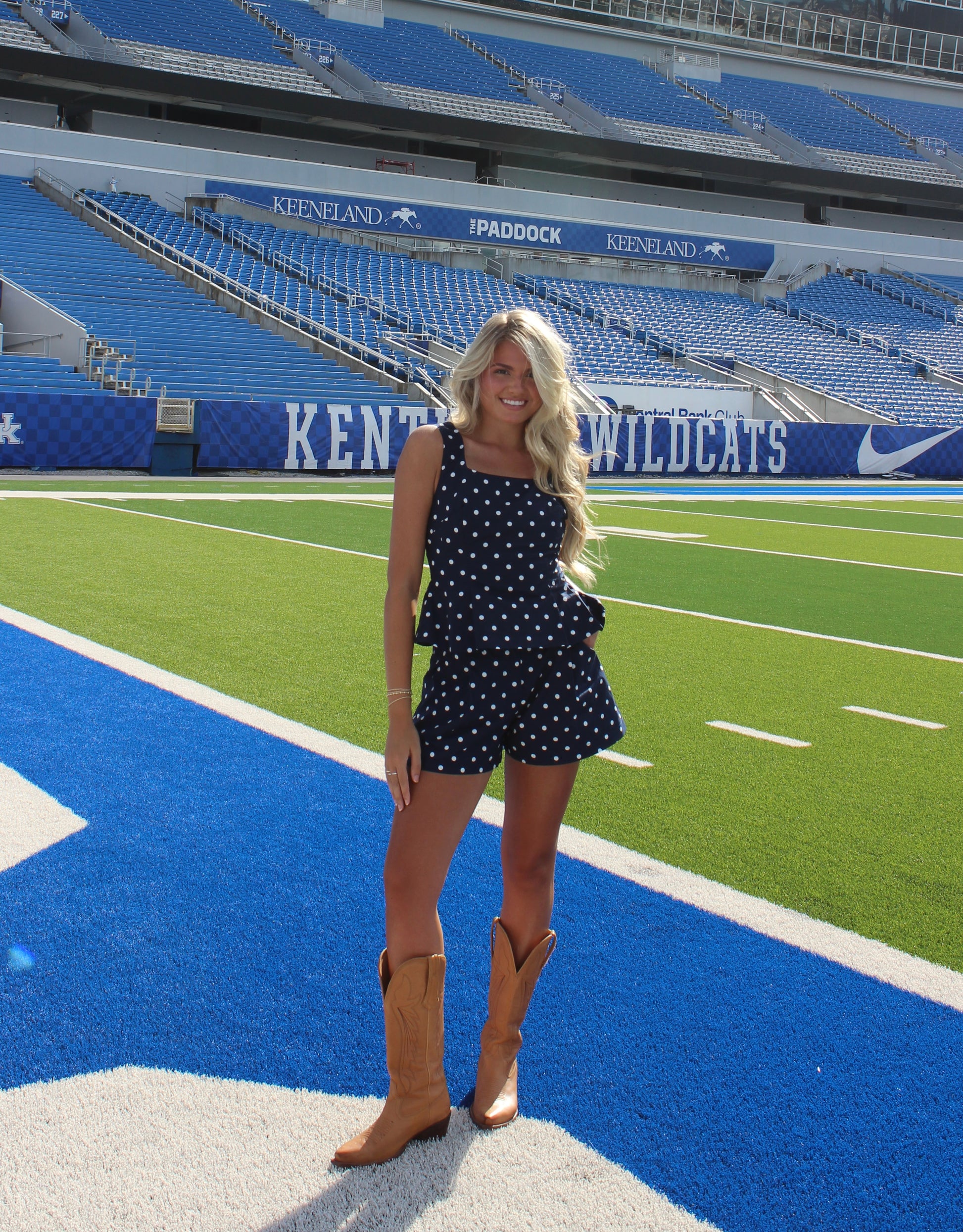 The Demi Polka Dot Pleated Shorts feature a high-waist design that flatters the silhouette while keeping you comfortable. With side pockets for practicality and a 100% rayon construction for softness and breathability, these shorts are perfect for stylish, everyday wear. Pair it with the Reece Polka Dot Top for an effortlessly chic gameday look.