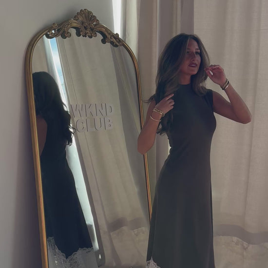 This lace-trimmed dress is a true Valentine’s dream. Designed with a soft, flowy silhouette and delicate lace detailing along the hem, it drapes beautifully for a flattering, feminine fit. Effortless yet elevated, this piece is perfect to throw on for date nights, cozy winter gatherings, or any occasion that calls for an easy, romantic look.